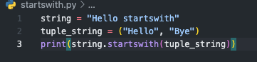 str.startwith(str or tuple) 형식으로 사용하면 되고, 반한 값으로는 True, False를 반환함.