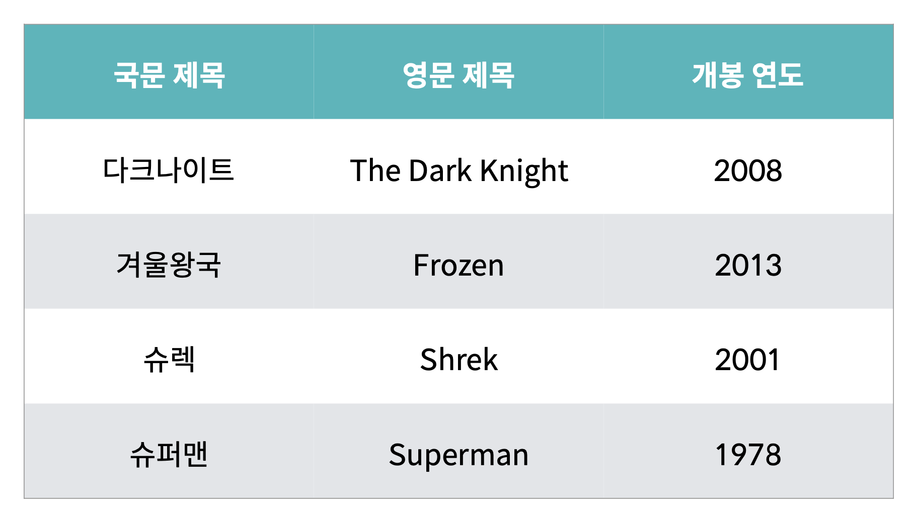 [List Comprehension을 사용하여 movies의 제목만 가져옴]