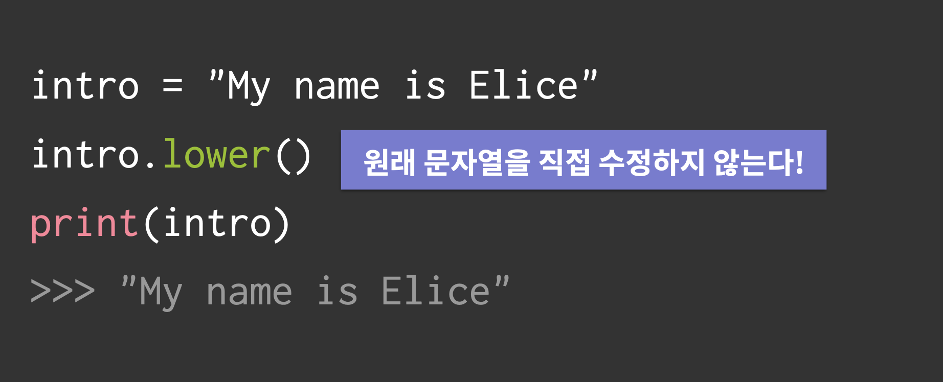 대소문자를 변환하는 method는 append() 등의 method와 달리 원래의 문자열을 직접 수정하지 않는다.
