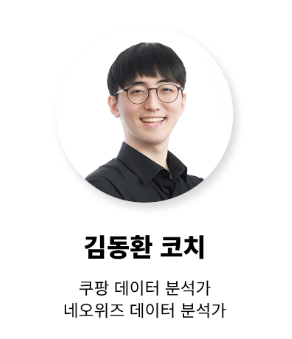 이번 주 데이터 분석 이론을 담당하신 김동환 코치님께서는 쿠팡 등에서 근무하셨던 화려한 경력을 가지신 분! (정말 존경스럽습니다)