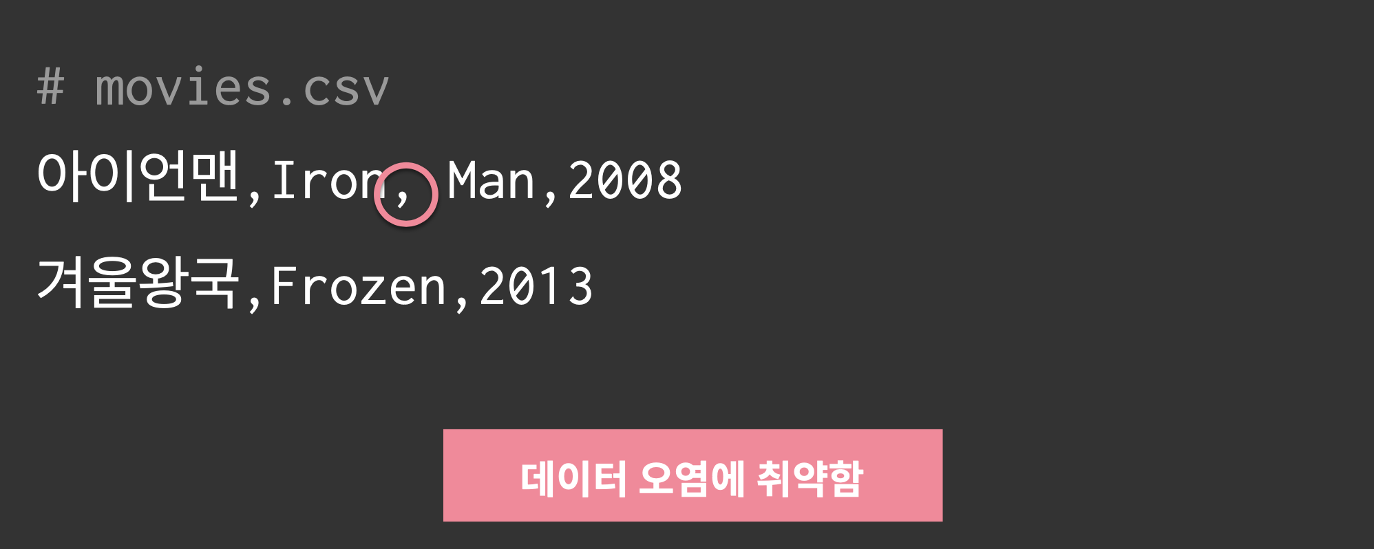소위 CSV (Comma Separated Values – 쉼표로 구분된 값) 형식은 스프레드시트와 데이터베이스에 대한 가장 일반적인 가져오기 및 내보내기 형식입니다. CSV 형식은 RFC 4180에서 표준화된 방식으로 형식을