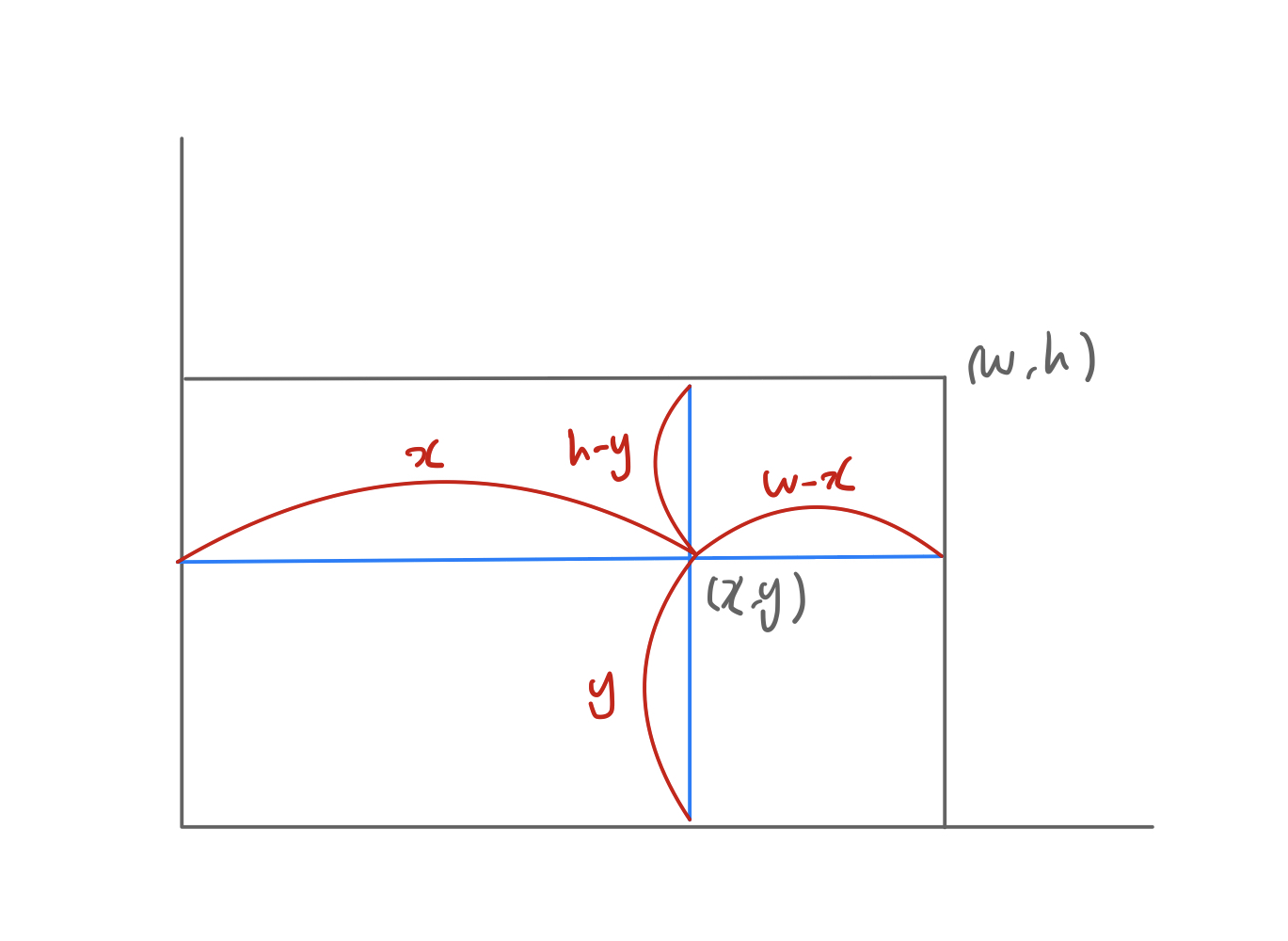 - (w, h)의 y축과 평행한 경계면 까지의 거리는 w-x
