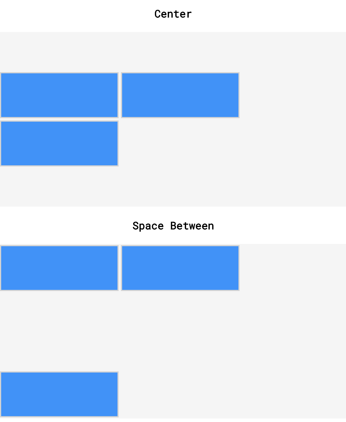 위에서 설명한 것처럼, justify-content와 같은 속성은 이전 예에서와 같은 방식으로 동작하지 않는다.