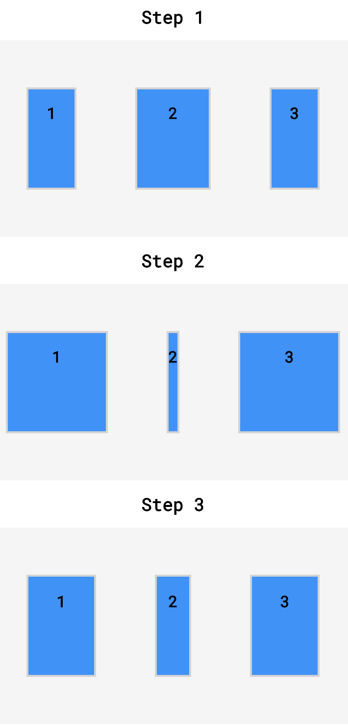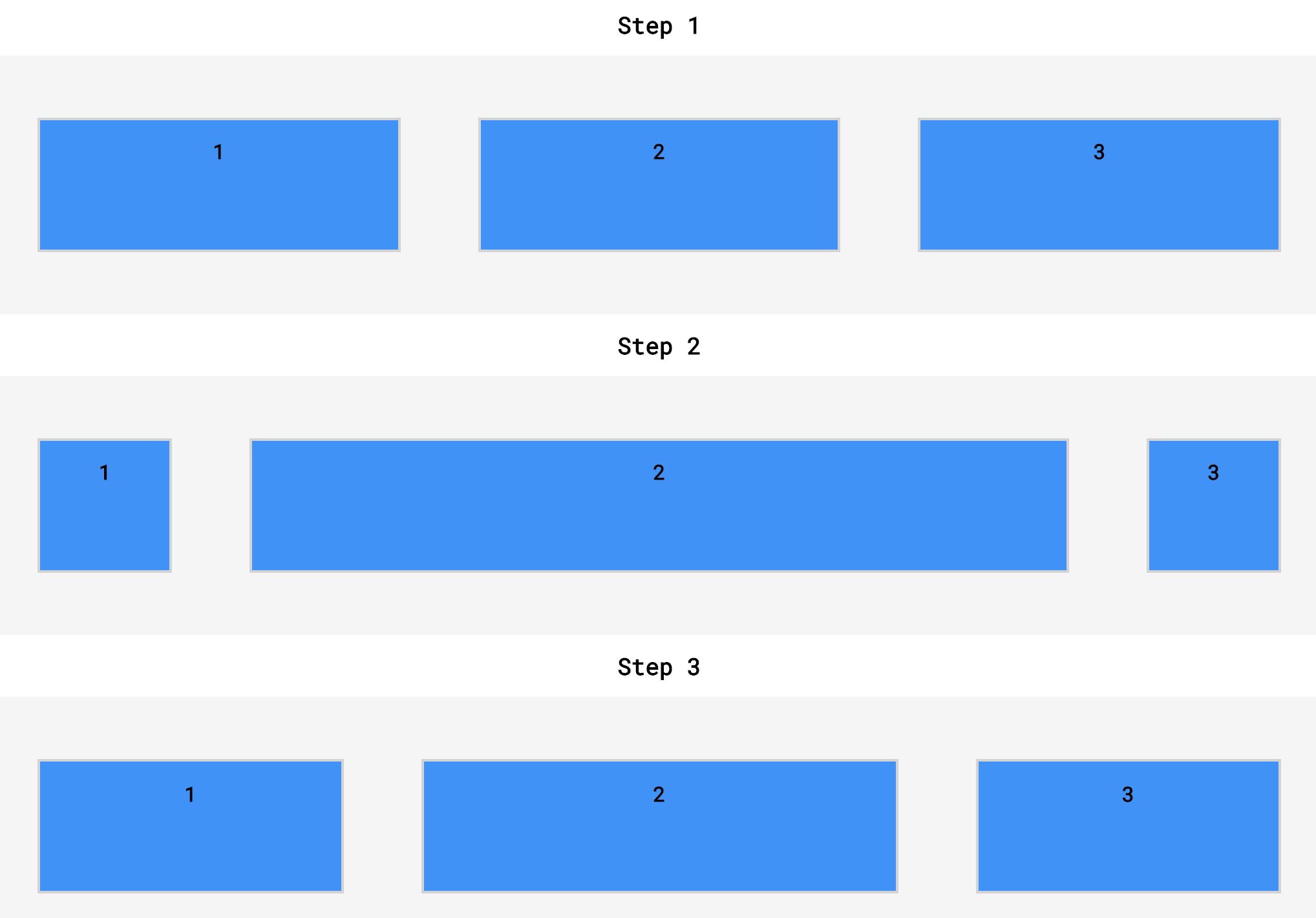만약 형제 요소로 렌더링 된 모든 flex-item 요소들이 동일한 flex-grow 값을 갖는다면, flex-container 내부에서 동일한 공간을 할당 받는다.