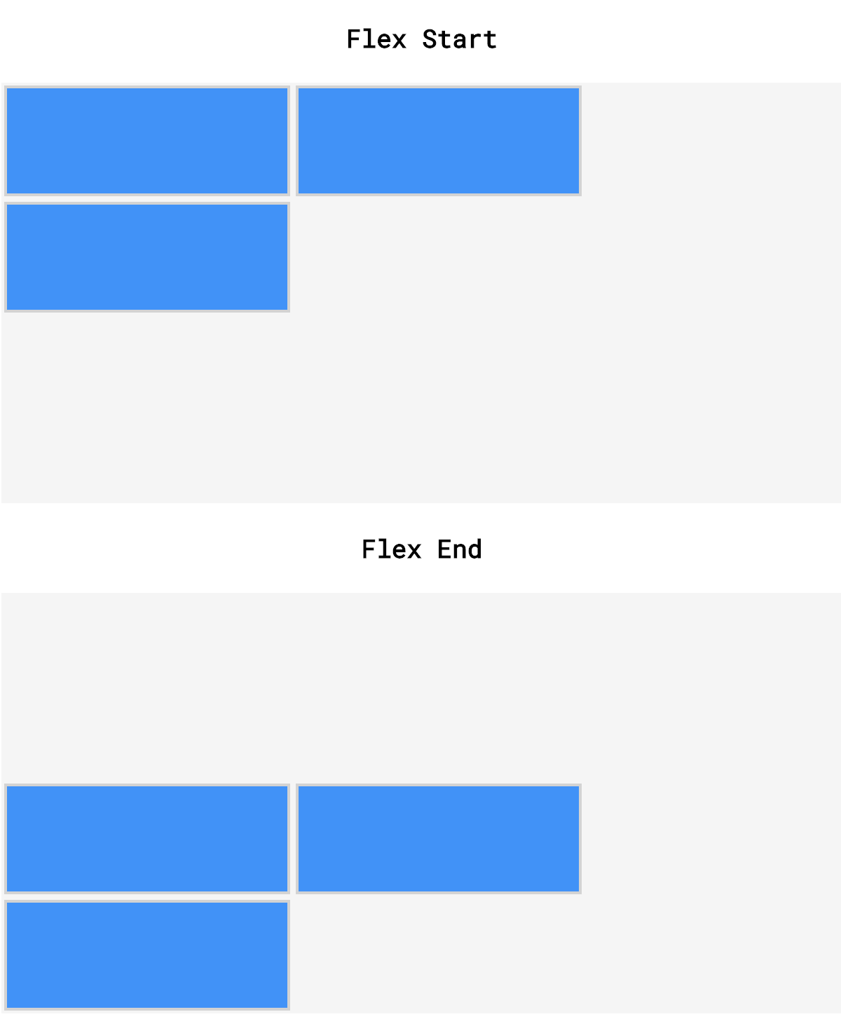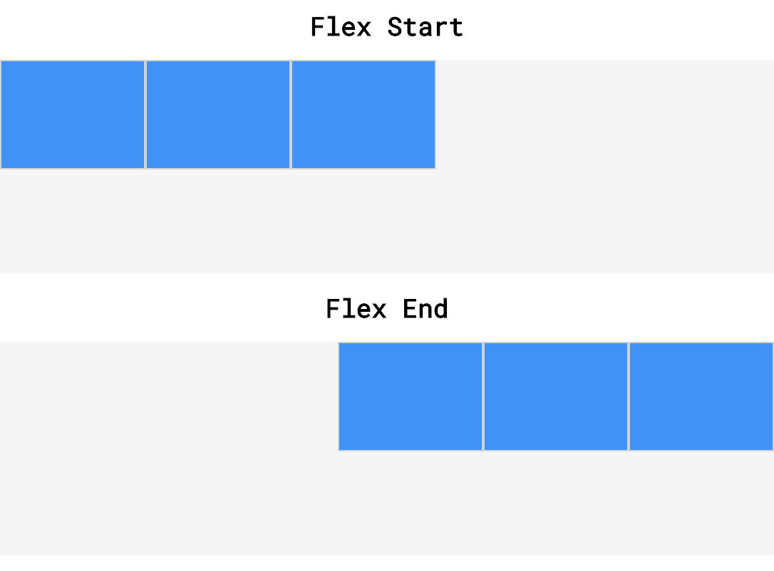 - flex-end: 모든 항목이 순서대로 배치되고 마지막 항목은 상위 컨테이너의 오른쪽에서 시작되며, 항목 사이 또는 뒤에 추가 공간이 없음