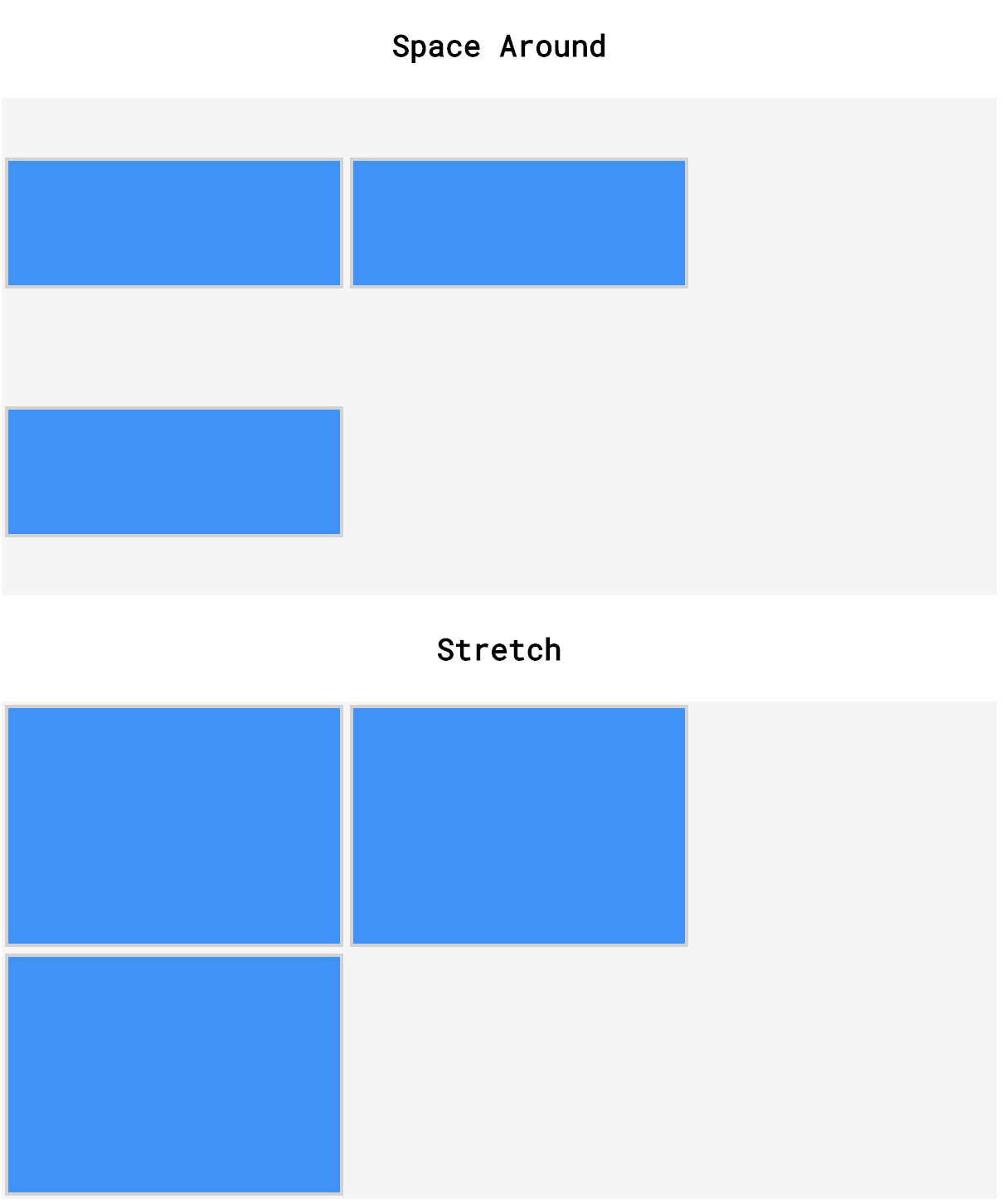 - space-around: 각 항목 앞과 뒤에 동일한 공간으로 항목이 배치되어 요소 사이의 공간이 두 배로 확장
